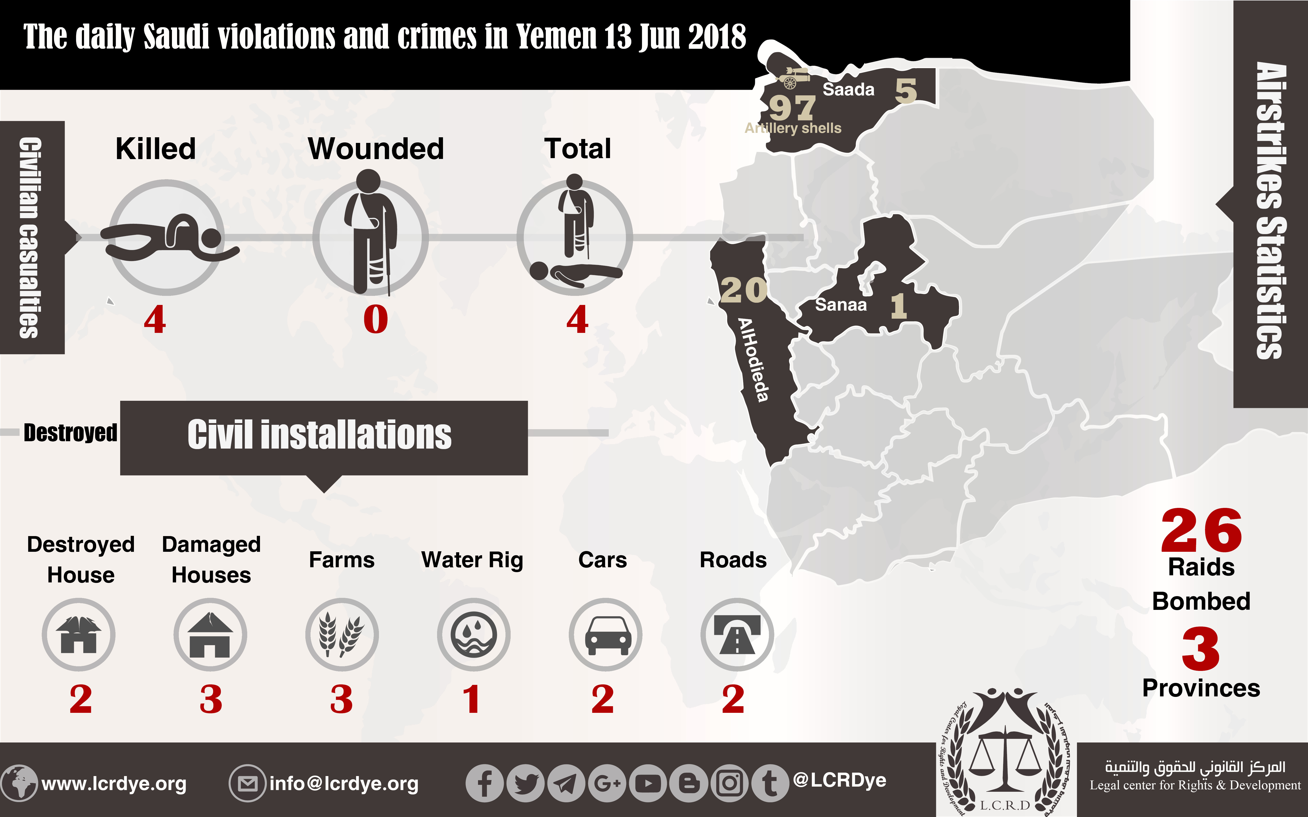 The daily Saudi violations and crimes in Yemen 13 Jun 2018 Share For download Share FacebookTwitterGoogle+ReddItWhatsAppPinterestEmail