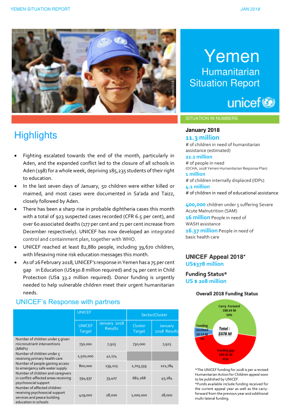 UNICEF Yemen Humanitarian Situation Report (April 2018