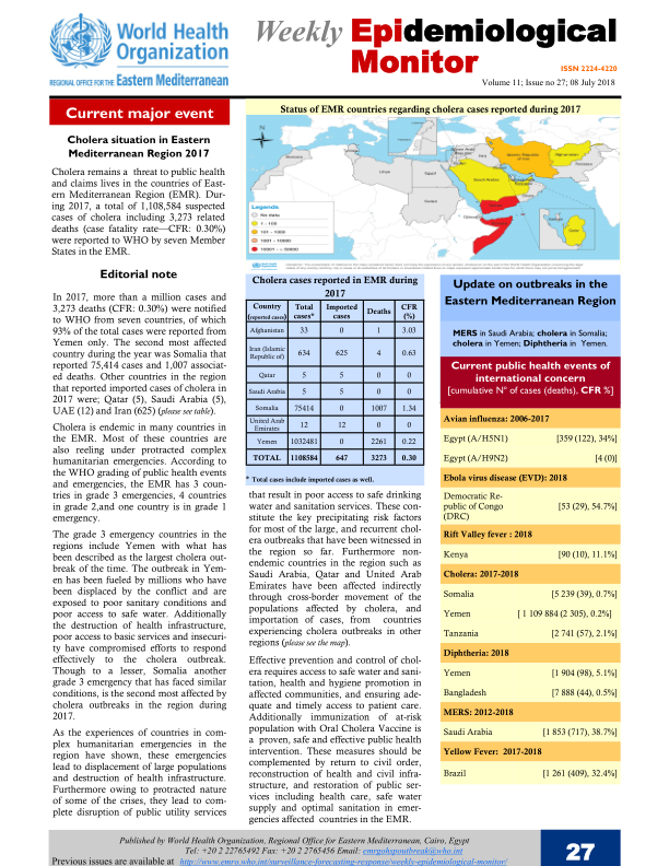 WHO EMRO Weekly Epidemiological Monitor: Volume 11, Issue 27 (8 July 2018)