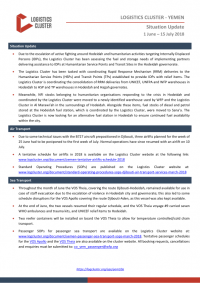 • Due to the escalation of active fighting around Hodeidah and humanitarian activities targeting Internally Displaced Persons (IDPs), the Logistics Cluster has been assessing the fuel and storage needs of implementing partners delivering assistance to IDPs at Humanitarian Service Points and Transit Sites in the Hodeidah governorate.