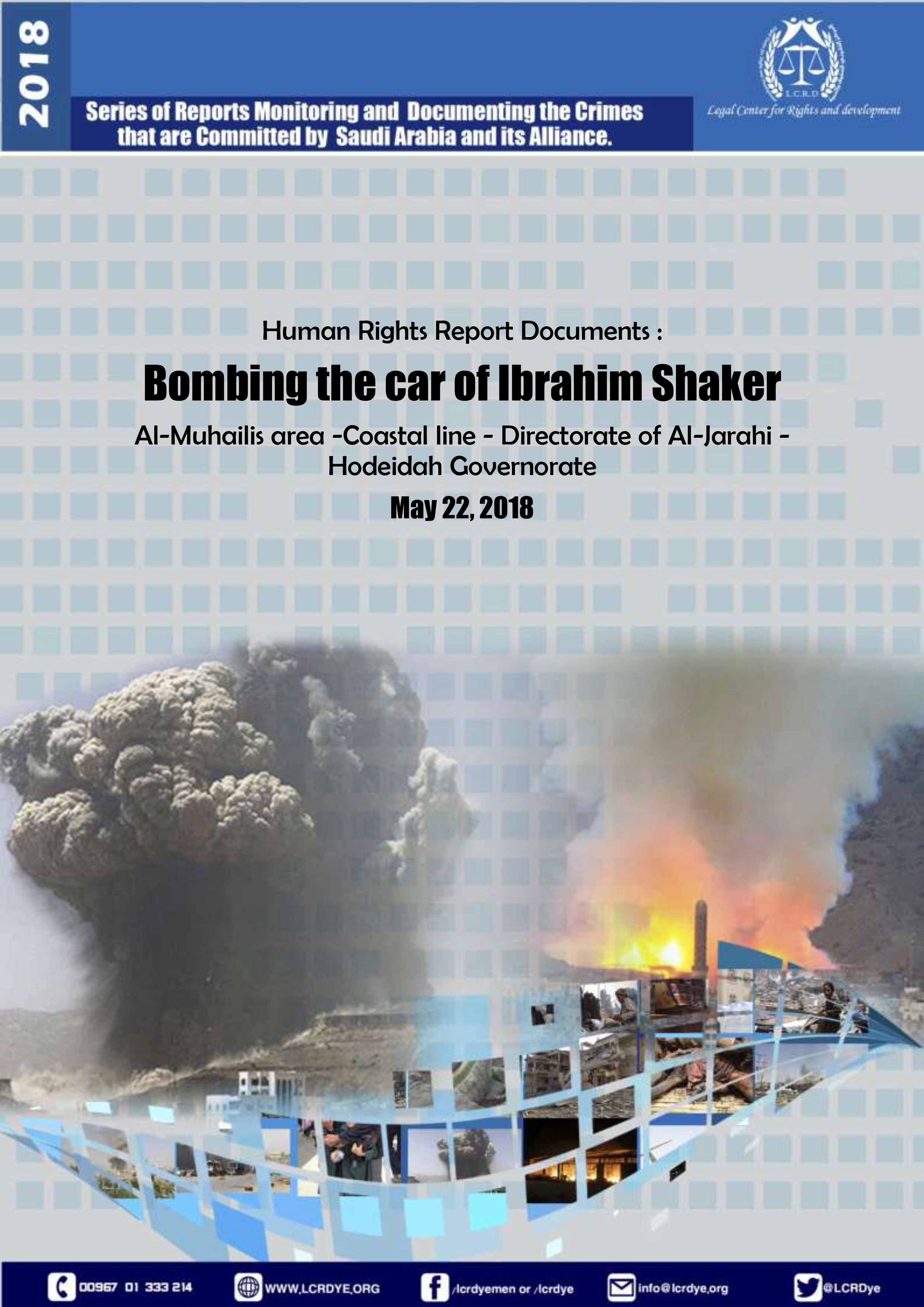 Bombing the car of Ibrahim Shaker Al-Muhailis area -Coastal line – Directorate of Al-Jarahi – Hodeidah Governorate May 22, 2018