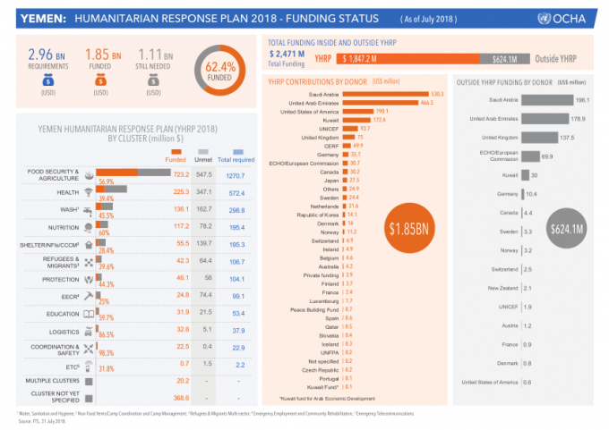 Yemen: Humanitarian Response Plan 2018 – Funding Status (As of July 2018) Share Yemen: Humanitarian Response Plan 2018 - Funding Status (As of July 2018) Share FacebookTwitterGoogle+ReddItWhatsAppPinterestEmail
