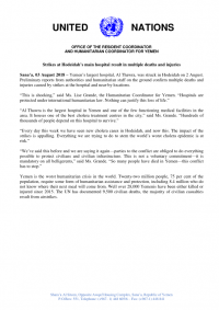 “This is shocking,” said Ms. Lise Grande, the Humanitarian Coordinator for Yemen. “Hospitals are protected under international humanitarian law. Nothing can justify this loss of life.”
