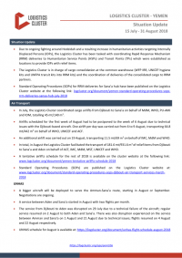 • Standard Operating Procedures (SOPs) for RRM deliveries for Sana’a hub have been published on the Logistics Cluster website at the following link: logcluster.org/document/yemen-standard-operating-procedures-sops-rrm-deliveries-sanaa-hub-july-2018