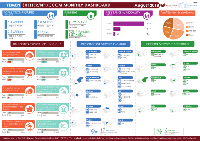 Yemen: Shelter/NFI/CCCM Monthly Dashboard for August 2018 Share https://reliefweb.int/report/yemen/yemen-shelternficccm-monthly-dashboard-august-2018 Yemen: Shelter/NFI/CCCM Monthly Dashboard for August 2018 Share FacebookTwitterGoogle+ReddItWhatsAppPinterestEmail