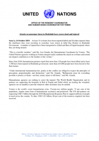 “This is a horrific incident,” said Ms. Lise Grande, the Humanitarian Coordinator for Yemen. “The United Nations agencies working in Yemen unequivocally condemn the attack on civilians and extend our deepest condolences to the families of the victims.”