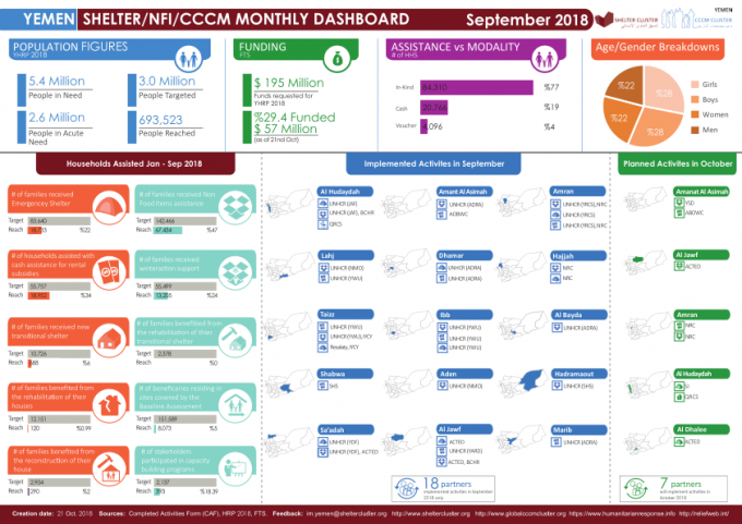 Yemen: Shelter/NFI/CCCM Monthly Dashboard for September 2018 Share https://reliefweb.int/report/yemen/yemen-shelternficccm-monthly-dashboard-september-2018 Yemen: Shelter/NFI/CCCM Monthly Dashboard for September 2018 Share FacebookTwitterGoogle+ReddItWhatsAppPinterestEmail