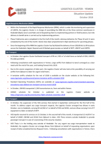- Due to the severe congestion of Aden port, the Logistics Cluster will also look at the possibility of carrying out airlifts from Djibouti to Aden for urgent relief items.