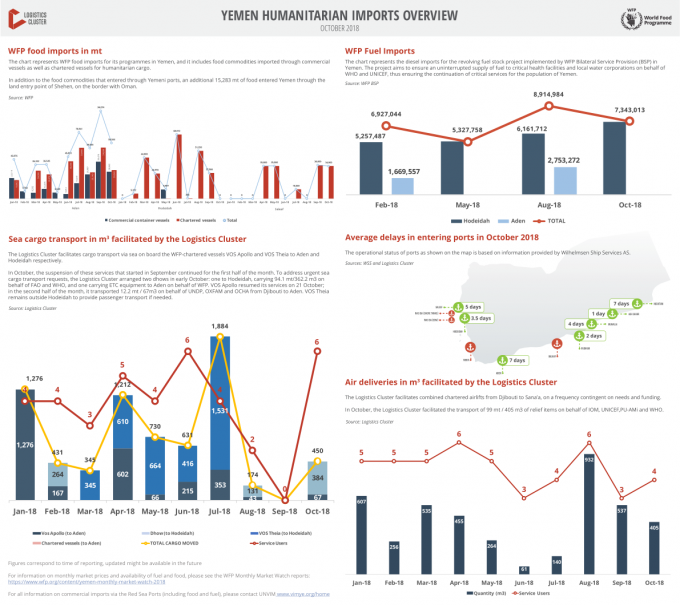 Yemen – Humanitarian Imports Overview, October 2018 Share https://reliefweb.int/report/yemen/yemen-humanitarian-imports-overview-october-2018 International Info-graphicOctober 2018Yemen - Humanitarian Imports Overview Share FacebookTwitterGoogle+ReddItWhatsAppPinterestEmail
