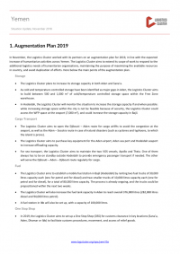 In November, the Logistics Cluster worked with its partners on an augmentation plan for 2019, in line with the expected increase of humanitarian activities across Yemen. The Logistics Cluster aims to extend its scope of work to respond to the additional logistics needs of humanitarian organisations, maintaining the purpose of maximizing the available resources in country, and avoid duplication of efforts. Here below the main points of the augmentation plan.