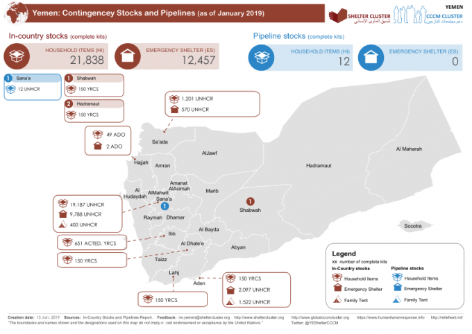 Yemen: Contingency Stocks and Pipelines (as of January 2019) Share https://reliefweb.int/map/yemen/yemen-contingency-stocks-and-pipelines-january-2019 international mapYemen: Contingency Stocks and Pipelines (as of January 2019) Share FacebookTwitterGoogle+ReddItWhatsAppPinterestEmail