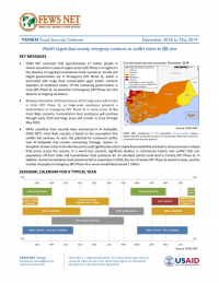 • Between December 2018 and January 2019, large areas will remain in Crisis (IPC Phase 3), as large-scale assistance prevents a deterioration to Emergency (IPC Phase 4) in many areas. In the most likely scenario, humanitarian food assistance will continue through early 2019 and large areas will remain in Crisis through May 2019.