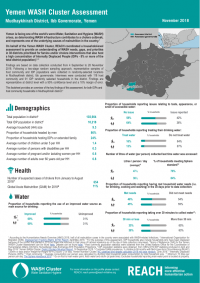 On behalf of the Yemen WASH Cluster, REACH coordinated a household-level assessment to provide an understanding of WASH needs, gaps, and priorities in 38 districts prioritized for famine and/or cholera interventions that also host a high concentration of Internally Displaced People (IDPs – 8% or more of the total district population).