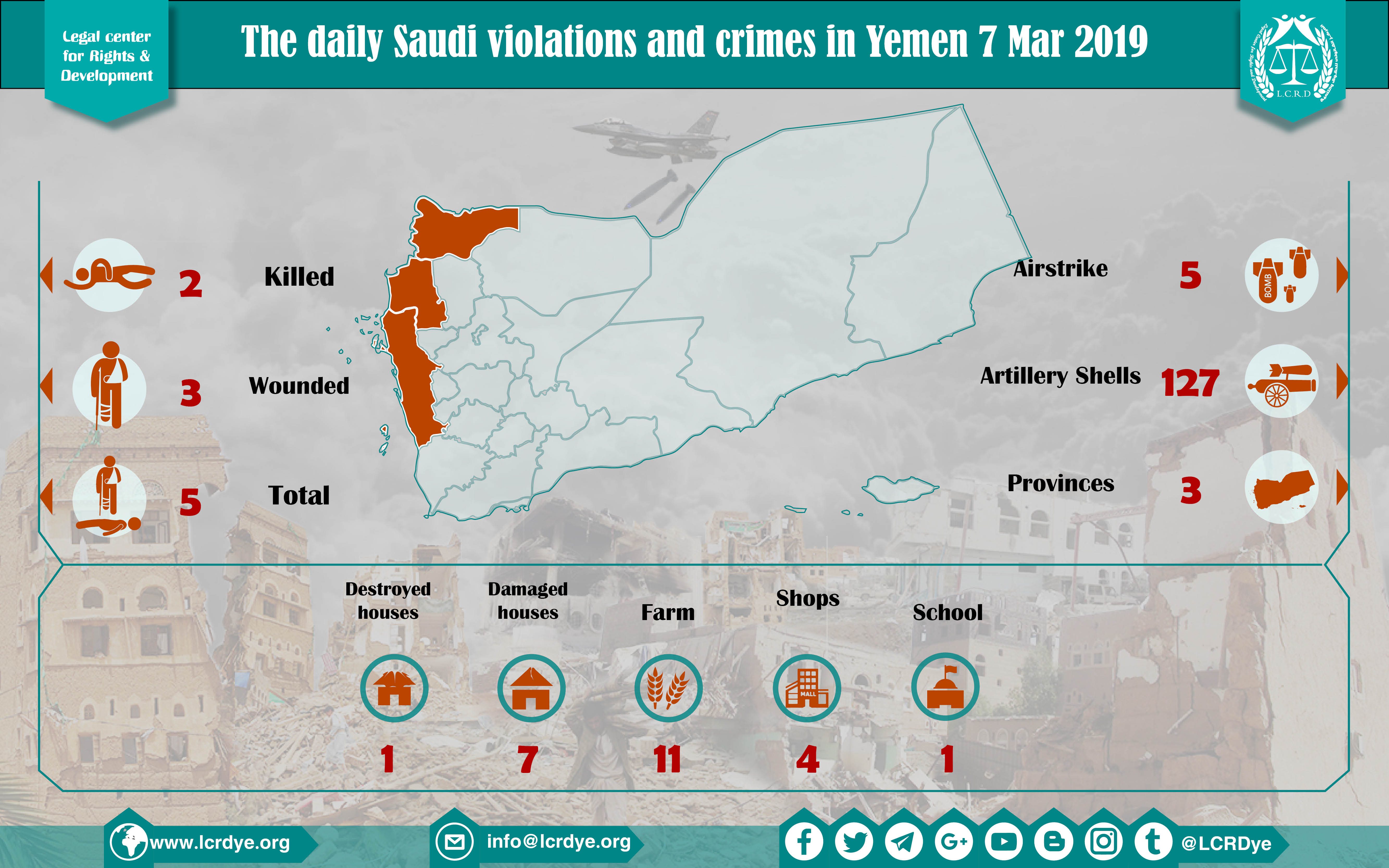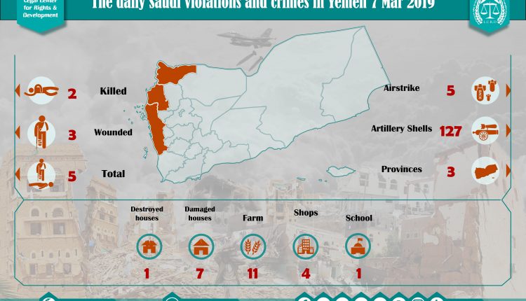 DAILY VIOLATION OBSERVATION REPORTS The Daily Report Of The Saudi Violations And Crimes In Yemen 7 Mar 2019 Share For download: legal center for right and developmentSaudi coalition CrimesViolation war lawsYemen Share FacebookTwitterGoogle+ReddItWhatsAppPinterestEmail