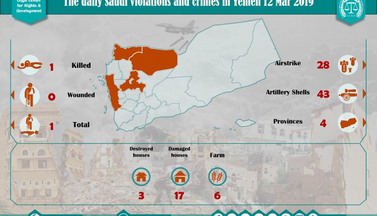 DAILY VIOLATION OBSERVATION REPORTS The Daily Report Of The Saudi Violations And Crimes In Yemen 12 Mar 2019 Share For download: legal center for right and developmentSaudi coalition CrimesViolation war lawsYemen Share FacebookTwitterGoogle+ReddItWhatsAppPinterestEmail