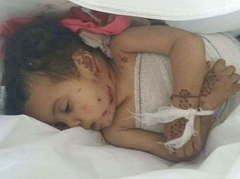 Killed (1) child and injured (12) others including (4) children and (3) women by (2) airstrikes that targeted a civilian’s car and damaged it at the pubic road, Al-Safra district.