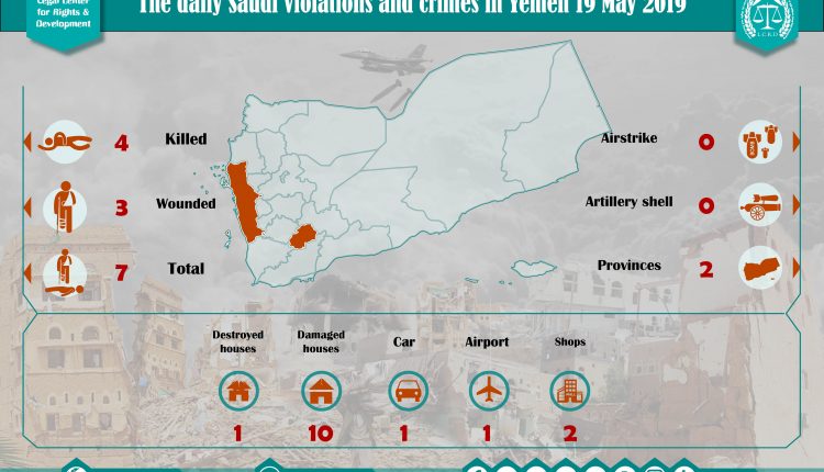 DAILY VIOLATION OBSERVATION REPORTS The Daily Report Of The Saudi Violations And Crimes In Yemen 19 May 2019 Share For download: legal center for right and developmentSaudi coalition CrimesViolation war lawsYemen Share FacebookTwitterGoogle+ReddItWhatsAppPinterestEmail