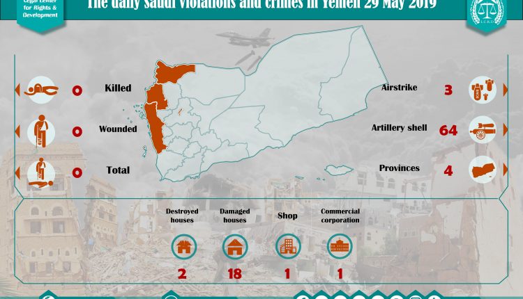 DAILY VIOLATION OBSERVATION REPORTS The Daily Report Of The Saudi Violations And Crimes In Yemen 29 May 2019 Share For download: legal center for right and developmentSaudi coalition CrimesViolation war lawsYemen Share FacebookTwitterGoogle+ReddItWhatsAppPinterestEmail