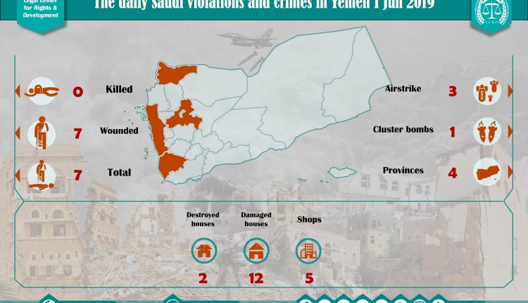 DAILY VIOLATION OBSERVATION REPORTS The Daily Report Of The Saudi Violations And Crimes In Yemen 1 Jun 2019 Share For download: legal center for right and developmentSaudi coalition CrimesViolation war lawsYemen Share FacebookTwitterGoogle+ReddItWhatsAppPinterestEmail