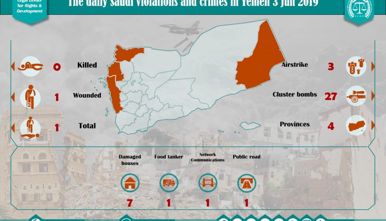 DAILY VIOLATION OBSERVATION REPORTS The Daily Report Of The Saudi Violations And Crimes In Yemen 3 Jun 2019 Share For download: legal center for right and developmentSaudi coalition CrimesViolation war lawsYemen Share FacebookTwitterGoogle+ReddItWhatsAppPinterestEmail