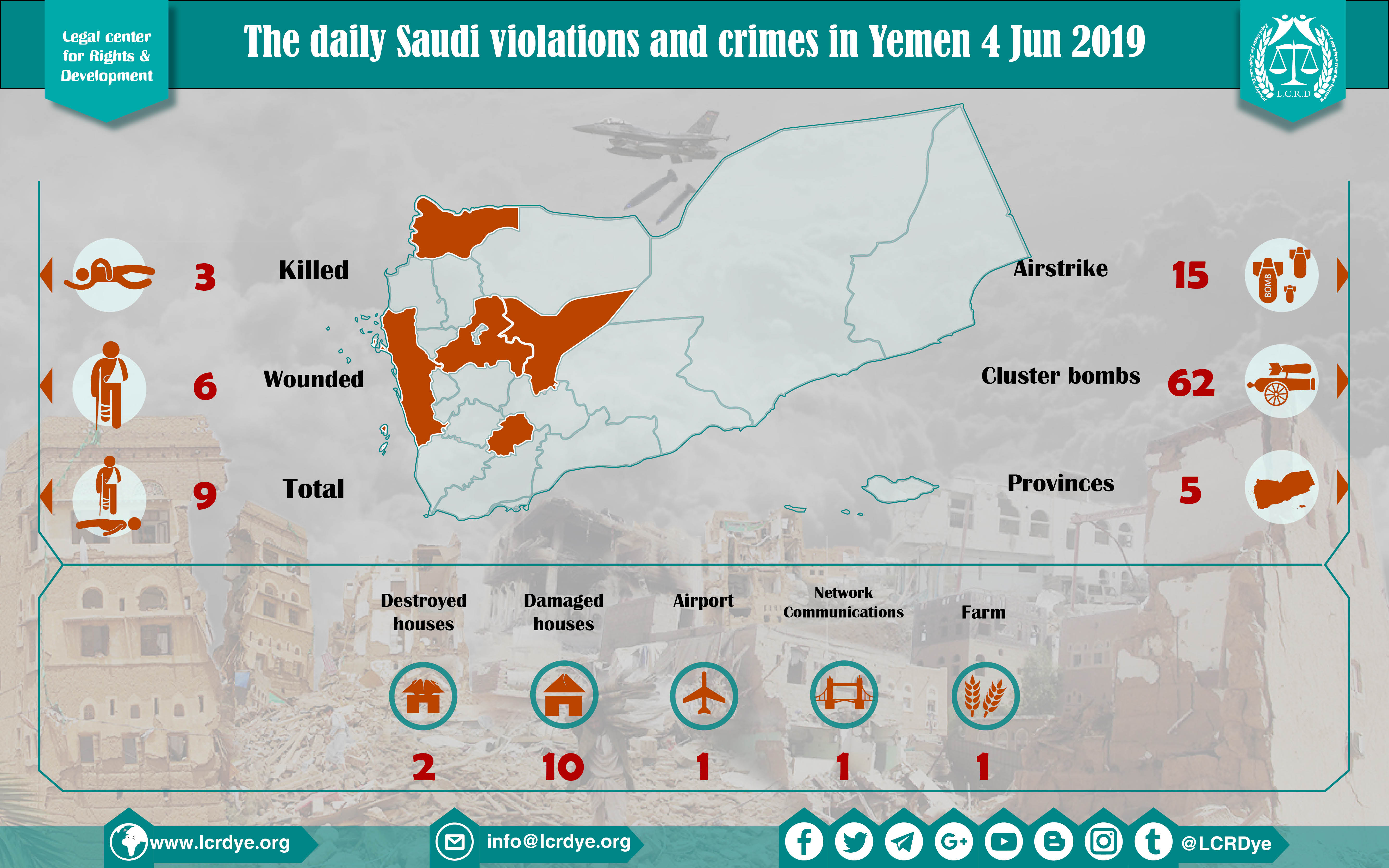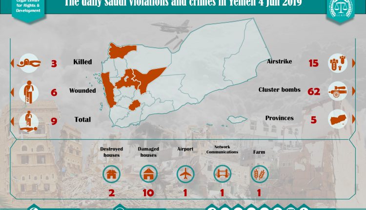 DAILY VIOLATION OBSERVATION REPORTS The Daily Report Of The Saudi Violations And Crimes In Yemen 4 Jun 2019 Share For download: legal center for right and developmentSaudi coalition CrimesViolation war lawsYemen Share FacebookTwitterGoogle+ReddItWhatsAppPinterestEmail
