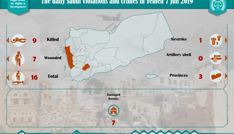 DAILY VIOLATION OBSERVATION REPORTS The Daily Report Of The Saudi Violations And Crimes In Yemen 7 Jun 2019 Share For download: legal center for right and developmentSaudi coalition CrimesViolation war lawsYemen Share FacebookTwitterGoogle+ReddItWhatsAppPinterestEmail