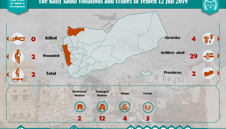 DAILY VIOLATION OBSERVATION REPORTS The Daily Report Of The Saudi Violations And Crimes In Yemen 12 Jun 2019 Share For download: legal center for right and developmentSaudi coalition CrimesViolation war lawsYemen Share FacebookTwitterGoogle+ReddItWhatsAppPinterestEmail