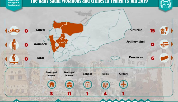 DAILY VIOLATION OBSERVATION REPORTS The Daily Report Of The Saudi Violations And Crimes In Yemen 13 Jun 2019 Share For download: legal center for right and developmentSaudi coalition CrimesViolation war lawsYemen Share FacebookTwitterGoogle+ReddItWhatsAppPinterestEmail