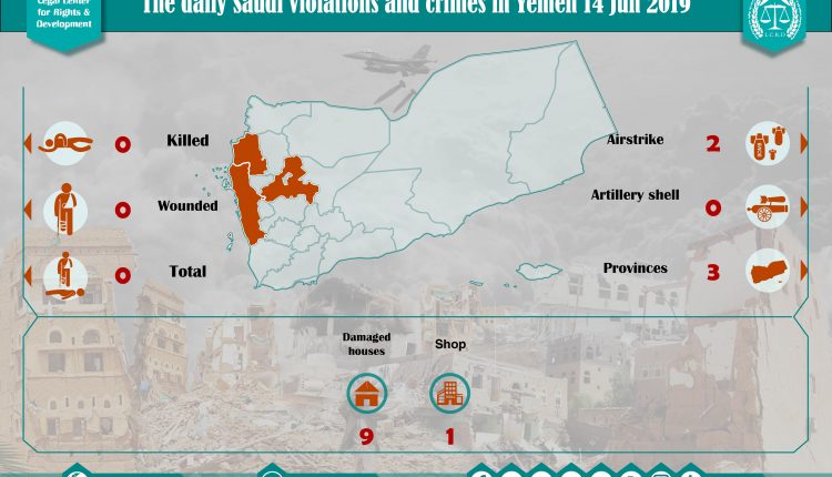 DAILY VIOLATION OBSERVATION REPORTS The Daily Report Of The Saudi Violations And Crimes In Yemen 14 Jun 2019 Share For download: legal center for right and developmentSaudi coalition CrimesViolation war lawsWFP Yemen Country BriefYemen Share FacebookTwitterGoogle+ReddItWhatsAppPinterestEmail