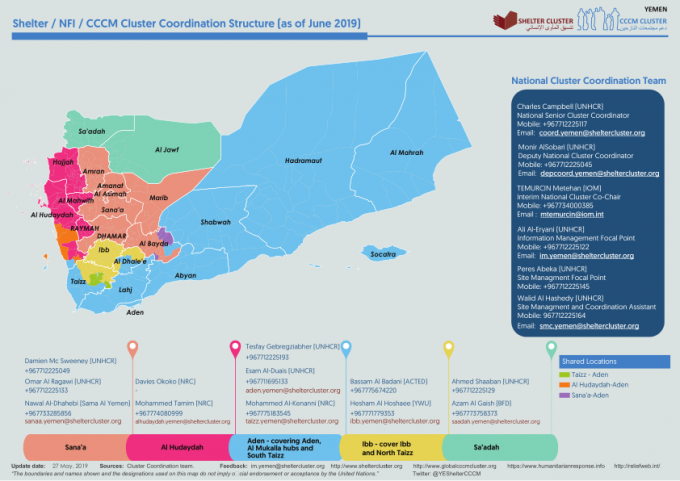 Yemen: Shelter / NFI / CCCM Cluster Coordination Structure (as of June 2019) Share https://reliefweb.int/map/yemen/yemen-shelter-nfi-cccm-cluster-coordination-structure-june-2019 international mapYemen: Shelter / NFI / CCCM Cluster Coordination Structure (as of June 2019)ه Share FacebookTwitterGoogle+ReddItWhatsAppPinterestEmail