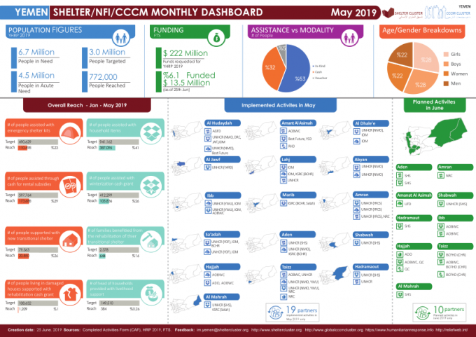 Yemen: Shelter/NFI/CCCM Monthly Dashboard for May 2019 Share https://reliefweb.int/report/yemen/yemen-shelternficccm-monthly-dashboard-may-2019 International Info-graphicYemen: Shelter/NFI/CCCM Monthly Dashboard for May 2019 Share FacebookTwitterGoogle+ReddItWhatsAppPinterestEmail