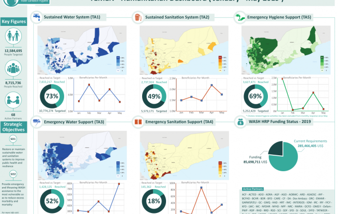 Yemen – Humanitarian Dashboard ( January – May 2019 ) Share https://reliefweb.int/report/yemen/yemen-humanitarian-dashboard-january-may-2019 International Info-graphicYemen - Humanitarian Dashboard ( January - May 2019 ) Share FacebookTwitterGoogle+ReddItWhatsAppPinterestEmail
