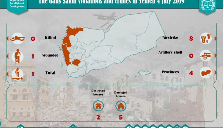 DAILY VIOLATION OBSERVATION REPORTS The Daily Report Of The Saudi Violations And Crimes In Yemen 4 Juiy 2019 Share For download: legal center for right and developmentSaudi coalition CrimesViolation war lawsYemen Share FacebookTwitterGoogle+ReddItWhatsAppPinterestEmail
