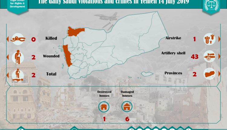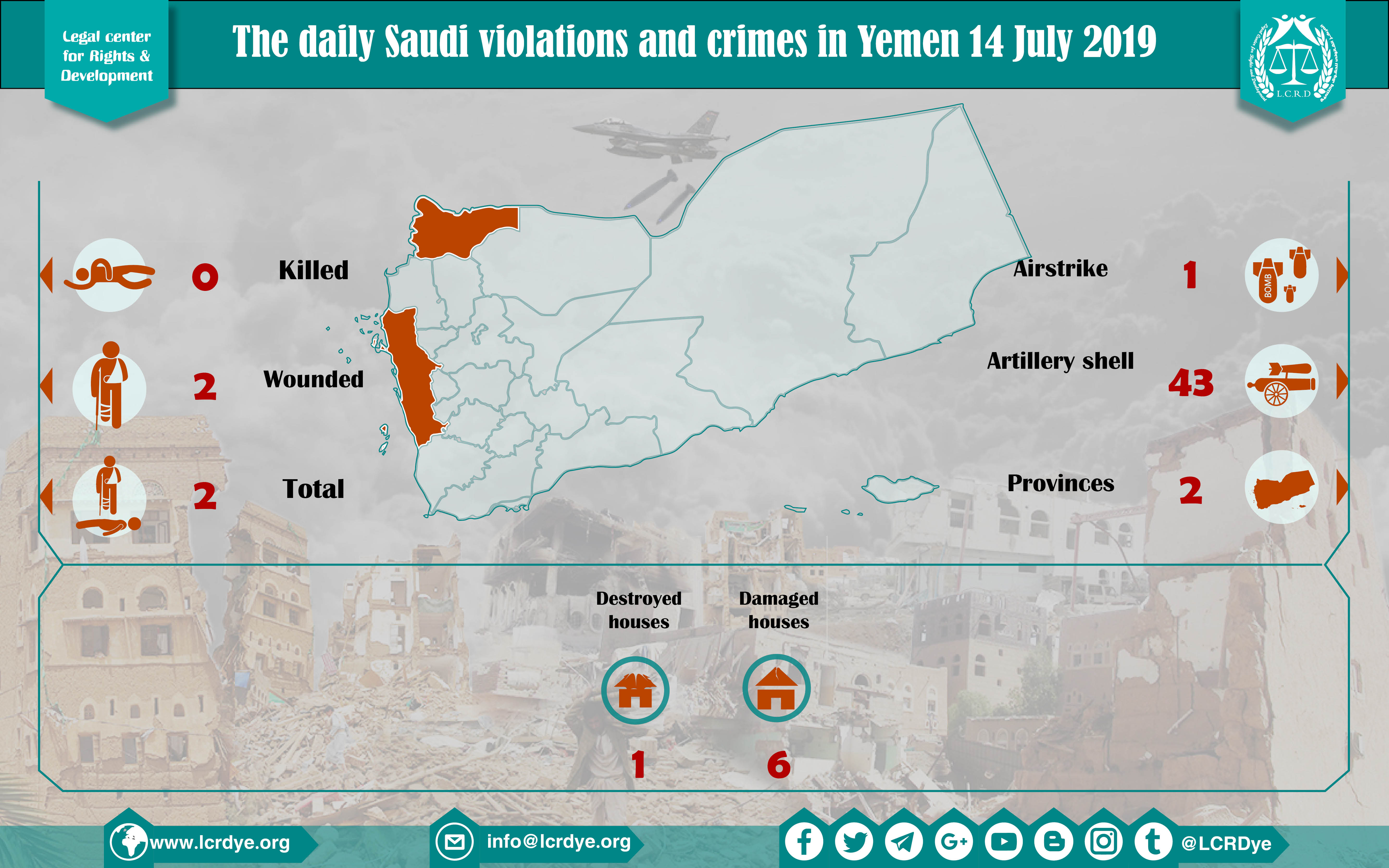 DAILY VIOLATION OBSERVATION REPORTS The Daily Report Of The Saudi Violations And Crimes In Yemen 14 July 2019 Share For download: legal center for right and developmentSaudi coalition CrimesViolation war lawsYemen Share FacebookTwitterGoogle+ReddItWhatsAppPinterestEmail