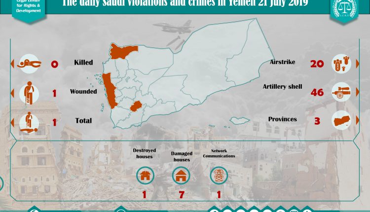 DAILY VIOLATION OBSERVATION REPORTS The Daily Report Of The Saudi Violations And Crimes In Yemen 21 July 2019 Share For download: legal center for right and developmentSaudi coalition CrimesViolation war lawsYemen Share FacebookTwitterGoogle+ReddItWhatsAppPinterestEmail