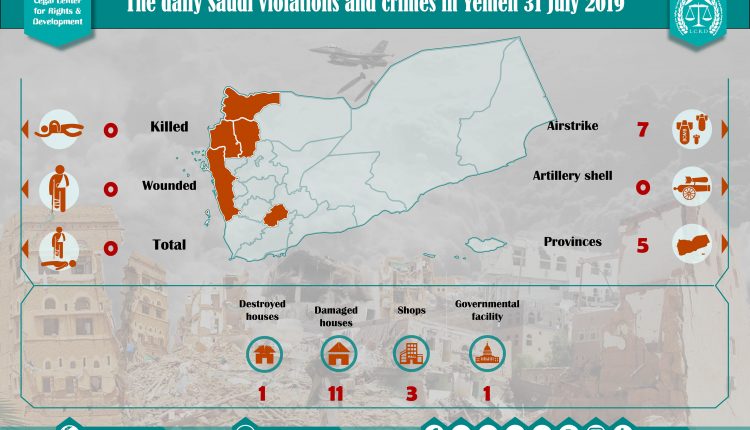 DAILY VIOLATION OBSERVATION REPORTS The Daily Report Of The Saudi Violations And Crimes In Yemen 31 July 2019 Share legal center for right and developmentSaudi coalition CrimesViolation war lawsYemen Share FacebookTwitterGoogle+ReddItWhatsAppPinterestEmail