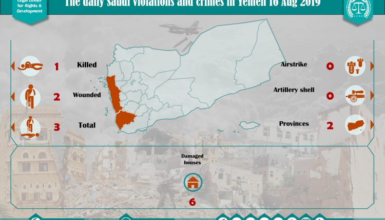 DAILY VIOLATION OBSERVATION REPORTS The Daily Report Of The Saudi Violations And Crimes In Yemen 16 Aug 2019 Share legal center for right and developmentSaudi coalition CrimesViolation war lawsYemen Share FacebookTwitterGoogle+ReddItWhatsAppPinterestEmail
