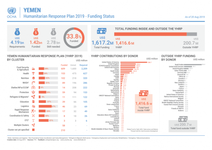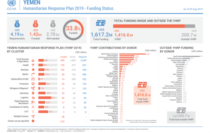 Yemen: Humanitarian Response Plan 2019 – Funding Status (As of 20 Aug 2019) [EN/AR] Share click the links below https://reliefweb.int/report/yemen/yemen-humanitarian-response-plan-2019-funding-status-20-aug-2019-enar https://reliefweb.int/sites/reliefweb.int/files/resources/YHF_funding_status_20082019.pdf Yemen: Humanitarian Response Plan 2019 - Funding Status (As of 20 Aug 2019) [EN/AR] Share FacebookTwitterGoogle+ReddItWhatsAppPinterestEmail