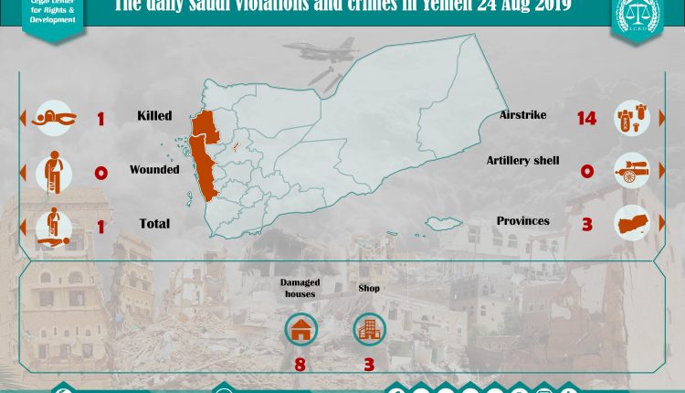 DAILY VIOLATION OBSERVATION REPORTS The Daily Report Of The Saudi Violations And Crimes In Yemen 24 Aug 2019 Share legal center for right and developmentSaudi coalition CrimesViolation war lawsYemen Share FacebookTwitterGoogle+ReddItWhatsAppPinterestEmail