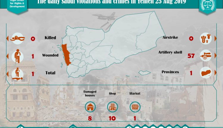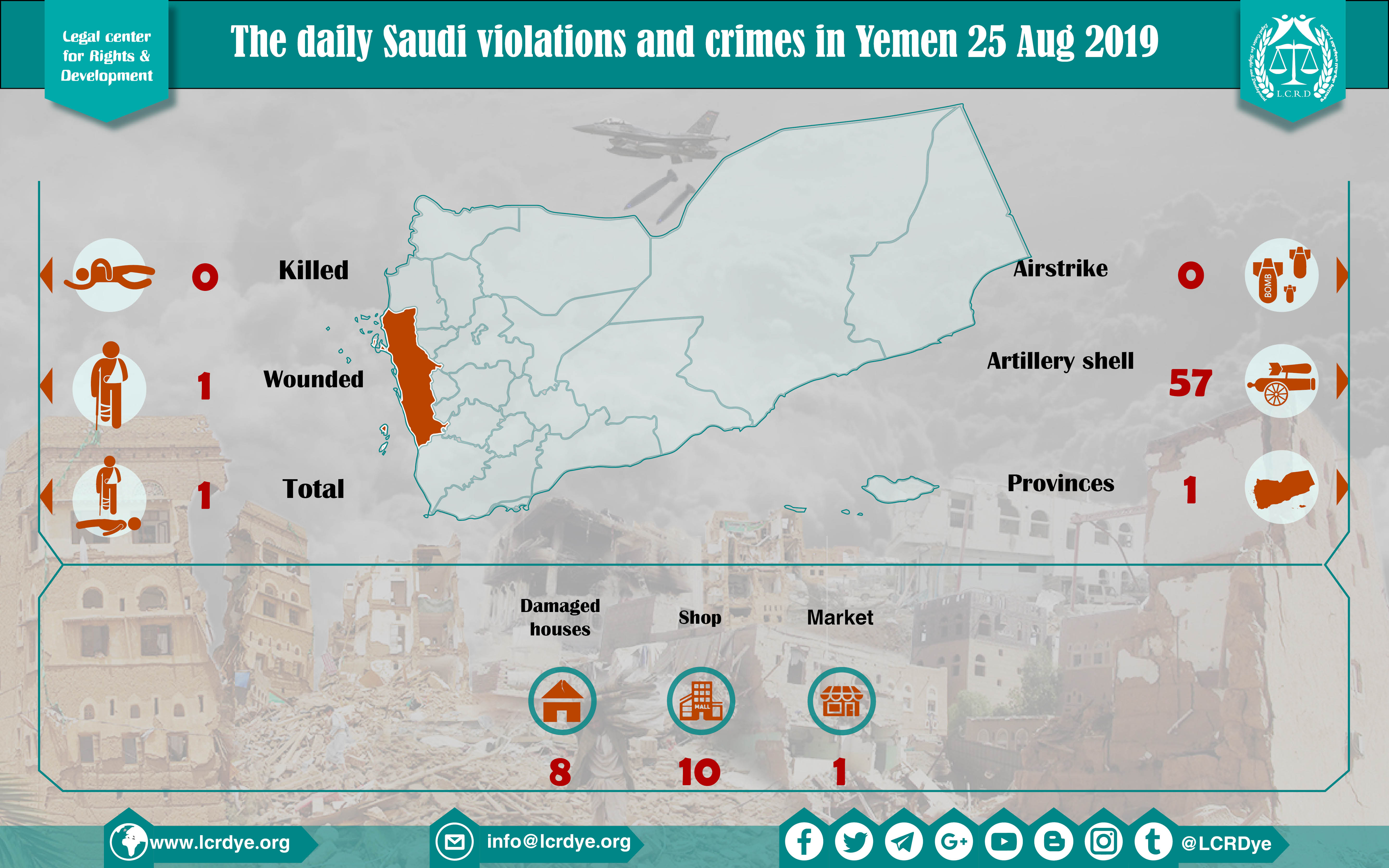 DAILY VIOLATION OBSERVATION REPORTS The Daily Report Of The Saudi Violations And Crimes In Yemen 25 Aug 2019 Share legal center for right and developmentSaudi coalition CrimesViolation war lawsYemen Share FacebookTwitterGoogle+ReddItWhatsAppPinterestEmail