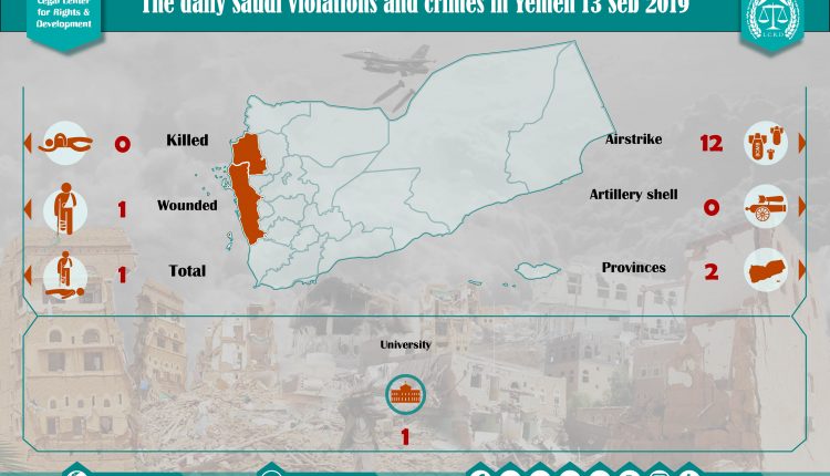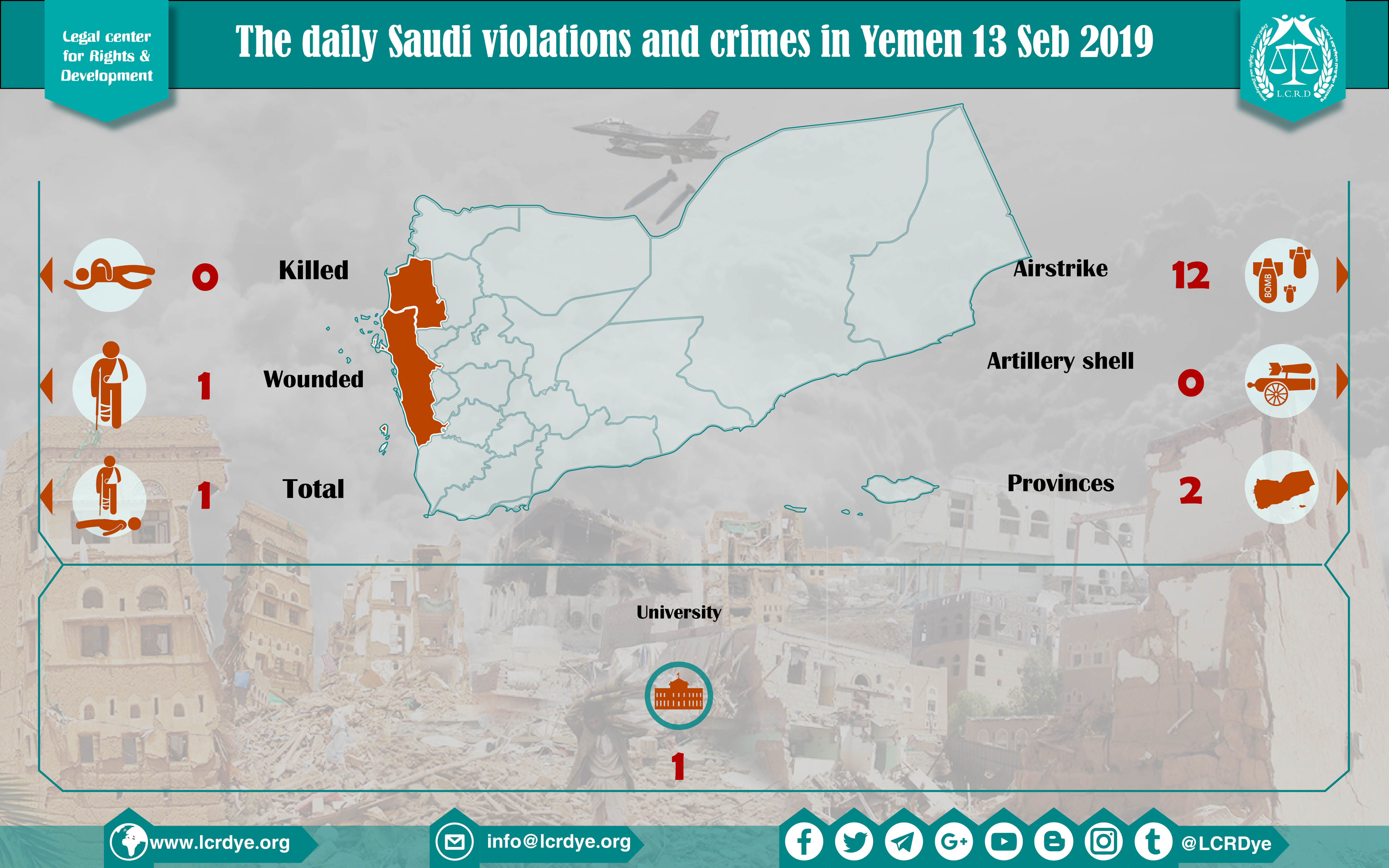 DAILY VIOLATION OBSERVATION REPORTS The Daily Report Of The Saudi Violations And Crimes In Yemen 13 Seb 2019 Share legal center for right and developmentSaudi coalition CrimesViolation war lawsYemen Share FacebookTwitterGoogle+ReddItWhatsAppPinterestEmail
