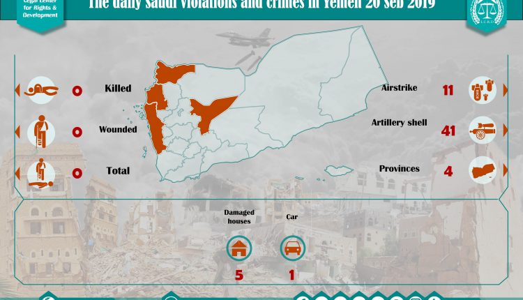 DAILY VIOLATION OBSERVATION REPORTS The Daily Report Of The Saudi Violations And Crimes In Yemen 20 Seb 2019 Share legal center for right and developmentSaudi coalition CrimesViolation war lawsYemen Share FacebookTwitterGoogle+ReddItWhatsAppPinterestEmail