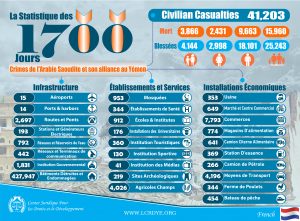 Image Infographic – La Statistique des 1700 Jours – Crimes de l’Arabie Saoudite et son alliance au Yémen Share Share FacebookTwitterGoogle+ReddItWhatsAppPinterestEmail