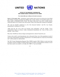 “We send our heartfelt condolences to all of the bereaved families,” said Ms. Lise Grande, Humanitarian Coordinator for Yemen.