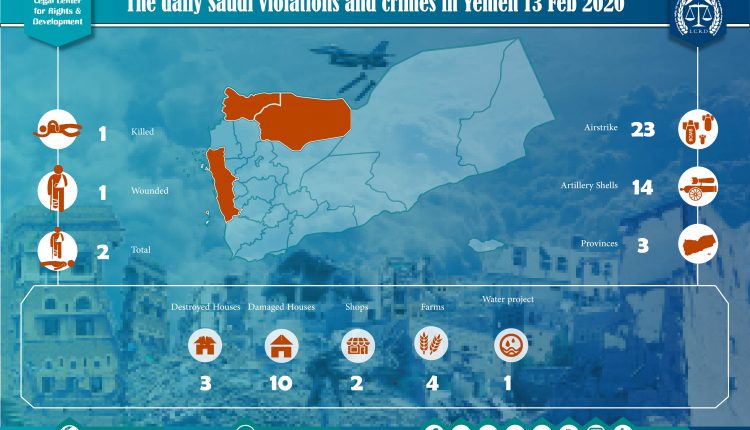 Primary Statistic Of The Violation And Crimes That Are Committed By Saudi Arabia And Its Alliance In Yemen 13 Feb 2020 Share legal center for right and developmentSaudi coalition CrimesViolation war lawsYemen Share FacebookTwitterGoogle+ReddItWhatsAppPinterestEmail