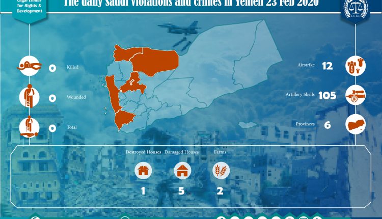Primary Statistic Of The Violation And Crimes That Are Committed By Saudi Arabia And Its Alliance In Yemen 23 Feb 2020 Share legal center for right and developmentSaudi coalition CrimesViolation war lawsYemen Share FacebookTwitterGoogle+ReddItWhatsAppPinterestEmail