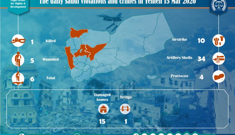 Primary Statistic Of The Violation And Crimes That Are Committed By Saudi Arabia And Its Alliance In Yemen 15 Mar 2020 Share legal center for right and developmentSaudi coalition CrimesViolation war lawsYemen Share FacebookTwitterGoogle+ReddItWhatsAppPinterestEmail