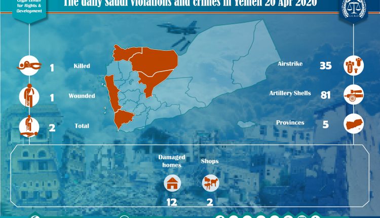 Primary Statistic Of The Violation And Crimes That Are Committed By Saudi Arabia And Its Alliance In Yemen 20 Apr 2020 Share legal center for right and developmentSaudi coalition CrimesViolation war lawsYemen Share FacebookTwitterGoogle+ReddItWhatsAppPinterestEmail