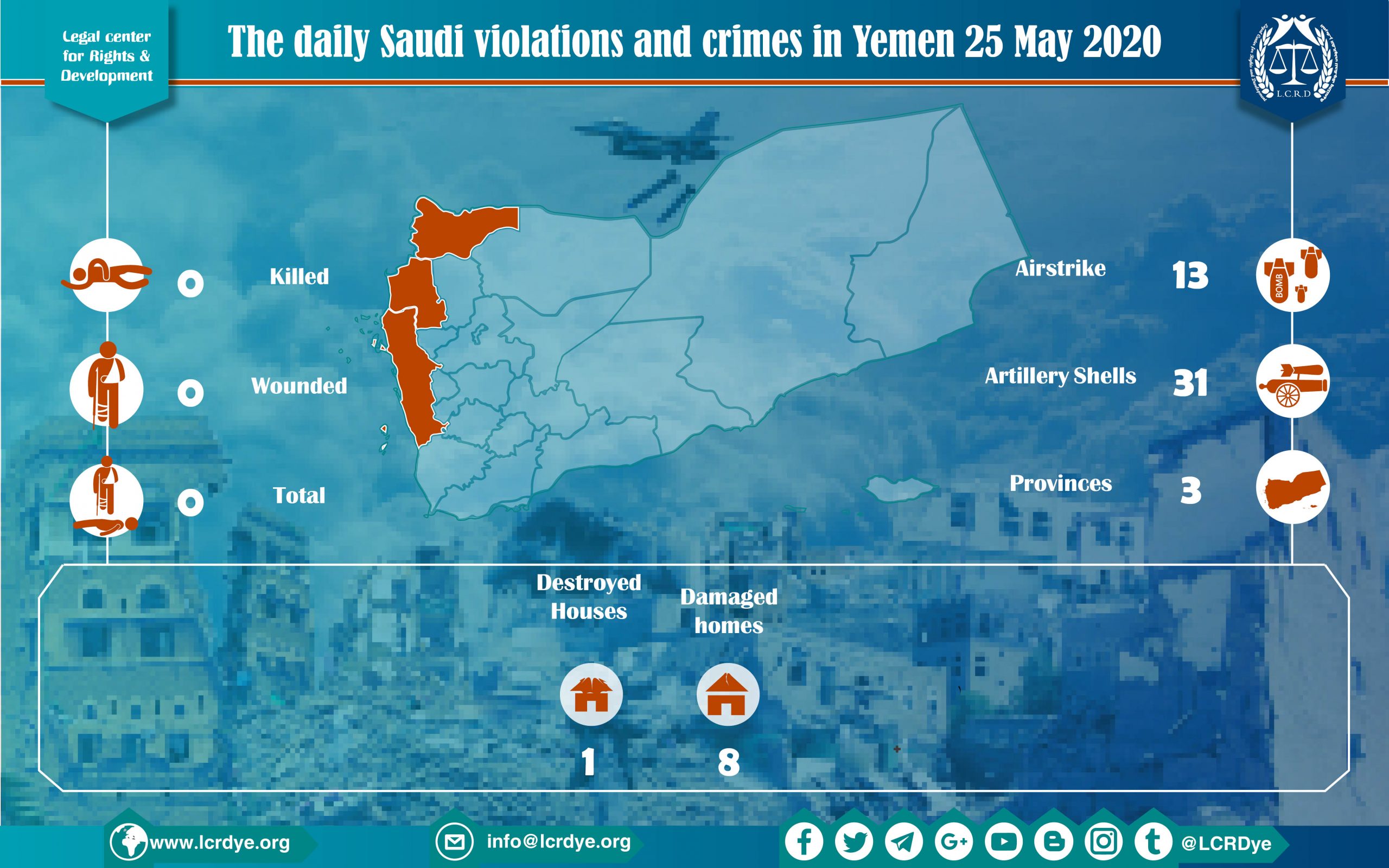 Primary Statistic Of The Violation And Crimes That Are Committed By Saudi Arabia And Its Alliance In Yemen 25 May 2020 Share legal center for right and developmentSaudi coalition CrimesViolation war lawsYemen Share FacebookTwitterGoogle+ReddItWhatsAppPinterestEmail