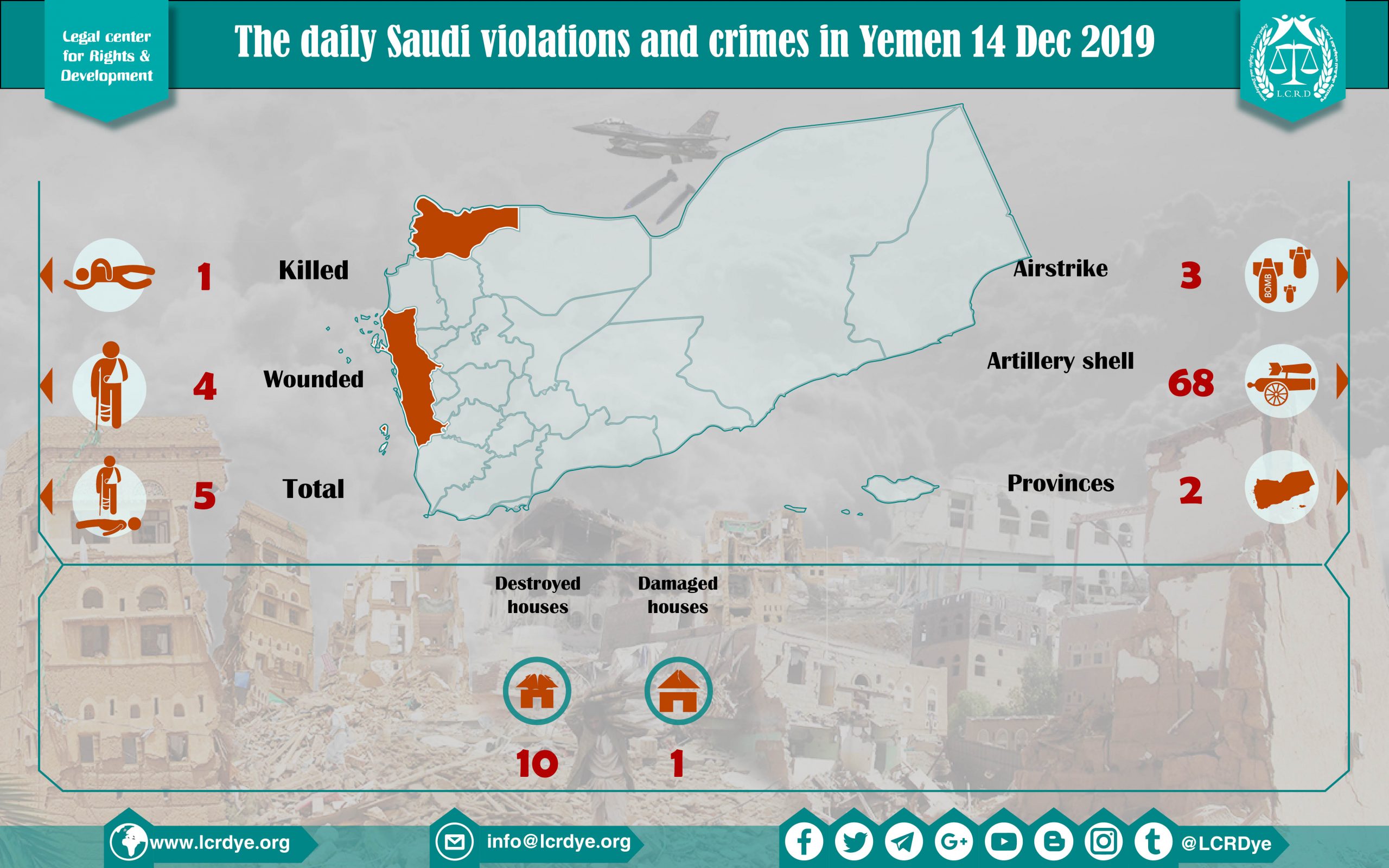 Primary Statistic Of The Violation And Crimes That Are Committed By Saudi Arabia And Its Alliance In Yemen 14 Dec 2019 Share legal center for right and developmentSaudi coalition CrimesYemen Share FacebookTwitterGoogle+ReddItWhatsAppPinterestEmail